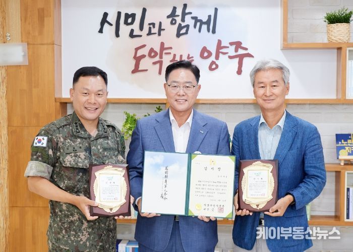 케이부동산뉴스 김교민 기자 | 시에 따르면 양주시가 6일 오전 양주시청을 방문한 지상작전사령부, 민·관·군 상생발전협의회에게 감사장 전달했다고 밝혔다.