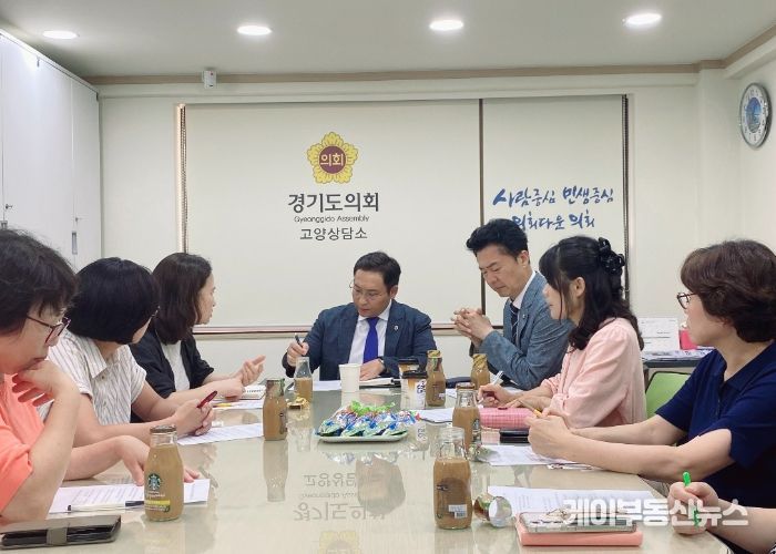 케이부동산뉴스 김교민 기자 | 경기도의회 교육행정위원회 변재석 의원(더불어민주당, 고양1)이 23일 고양상담소에서 고양특례시 사립 가정어린이집 현장의 목소리를 듣기 위해 정담회를 열었다.