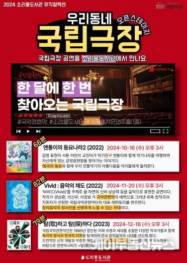 케이부동산뉴스 김교민 기자 | 오산시 소리울도서관은 국립극장이 주관하는 ‘2024 우리동네 국립극장’ 공모사업에 선정되어 오는 16일부터 ‘2024년 우리동네 국립극장’ 프로그램을 운영한다.