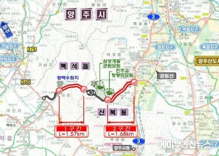 케이부동산뉴스 김교민 기자 | 양주시가 오는 30일 백석읍 방성리와 산북동 국도3호선을 연결하는 시도30호선(방성-산북) 일부 구간을 개통한다고 밝혔다.