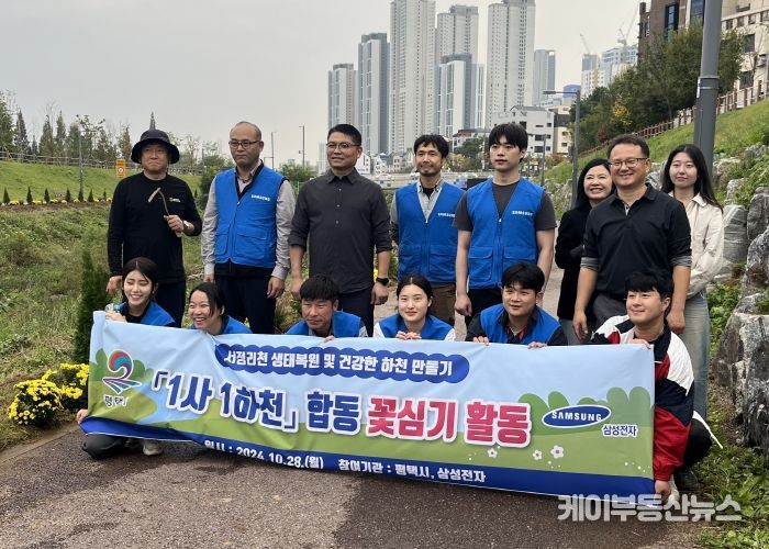 케이부동산뉴스 김교민 기자 | 평택시는 지난 28일 서정리천에서 평택 삼성전자와 합동으로 ‘1사 1하천 가꾸기’ 업무협약의 하나로 산책로 주변 꽃 심기 행사를 진행했다고 밝혔다.