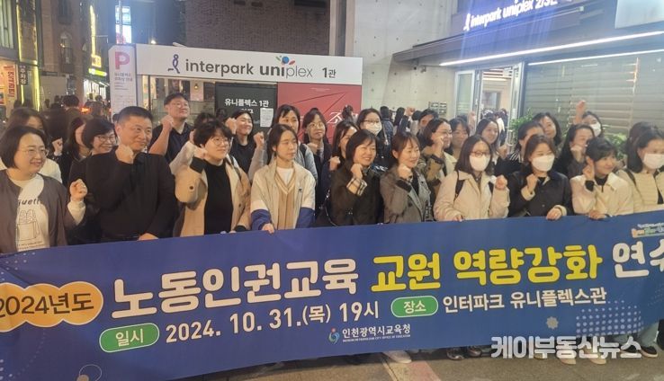 케이부동산뉴스 김교민 기자 | 인천광역시교육청은 지난 10월 31일, 관내 초·중·고·특수학교 교원 45명을 대상으로 ‘2024 노동 인권 교육 교원 역량 강화 연수’를 실시했다.