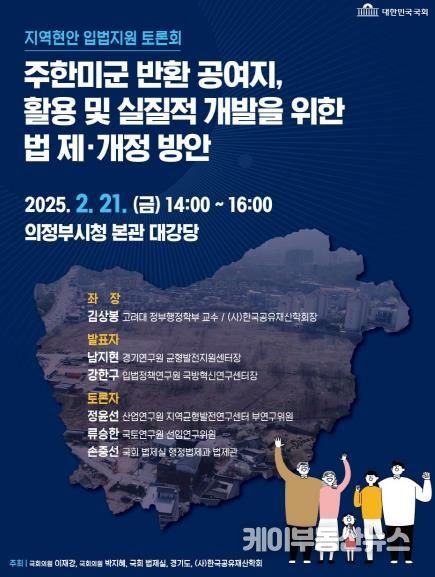 케이부동산뉴스 김교민 기자 | 경기도는 오는 21일 의정부시청 대강당에서 ‘주한민군 반환공여구역 등 활용 및 개발을 위한 정책토론회’를 개최한다.