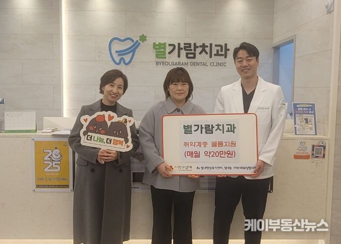 한편, 4호선 별내별가람역 인근에 위치한 별가람치과는 지역 내 도움이 필요한 이웃들을 위해 의류, 신발, 생필품 등 맞춤형 후원물품을 지속적으로 지원하고 있으며, 앞으로도 지역사회와 함께하는 나눔을 이어갈 예정이다.