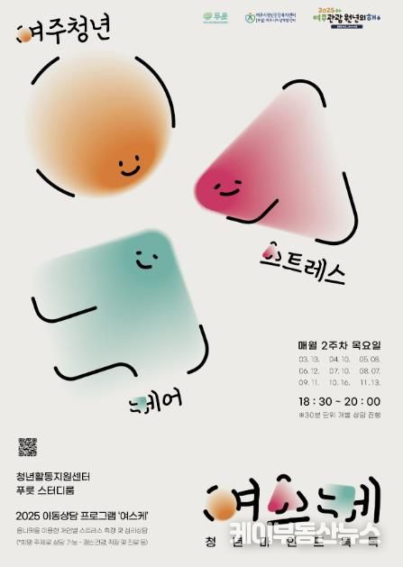 케이부동산뉴스 김교민 기자 | 여주시청년활동지원센터는 오는 3월부터, 여주시정신건강복지센터와 함께하는 협력사업으로'여주 청년 스트레스 케어(이하 여·스·케)'프로그램을 진행한다고 밝혔다.