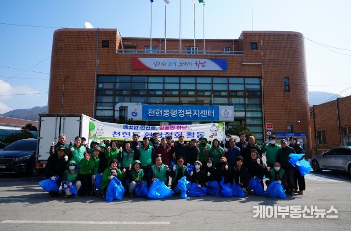 케이부동산뉴스 김교민 기자 | 지난 3월 6일, 경기도 하남시 천현동에서는 민과 관이 함께 새봄을 맞아 관내 산곡천 일원 쓰레기를 줍는 환경정화활동을 실시했다.