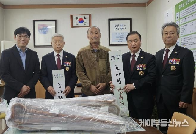 케이부동산뉴스 김교민 기자 | 수원시 권선구 입북동 행정복지센터는 지난 25일, 대한민국무공수훈자회 경기도지부 수원특례시 지회에 입북동 특산품인 효사랑 장수 지팡이를 전달했다.