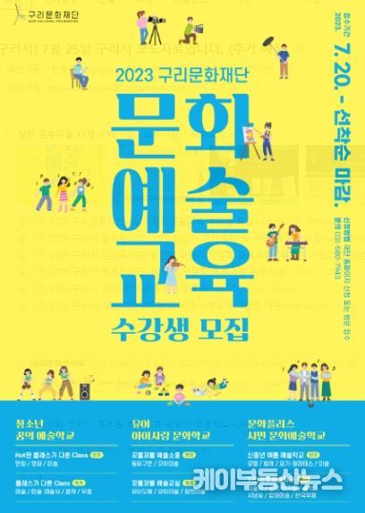케이부동산뉴스 | (재)구리문화재단은 7월 20일부터 정원 마감 시까지 '2023 문화예술교육 프로그램' 수강생을 모집하고 있다.