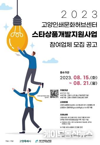 케이부동산뉴스 | 고양특례시 고양인쇄문화허브센터가 8월 15일부터 8월 21일까지 ‘2023년 스타상품개발 지원 사업’의 참여 업체를 모집한다.