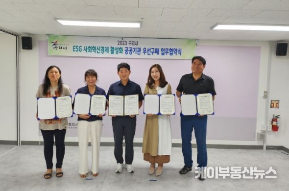 케이부동산뉴스 | 구리시는 지난 24일 구리시공동체사회적경제지원센터에서 사회적경제 활성화를 위해 관내 사회혁신경제기업과 구리도시공사 간 ‘공공기관 우선구매 업무 협약’을 체결했다고 밝혔다.