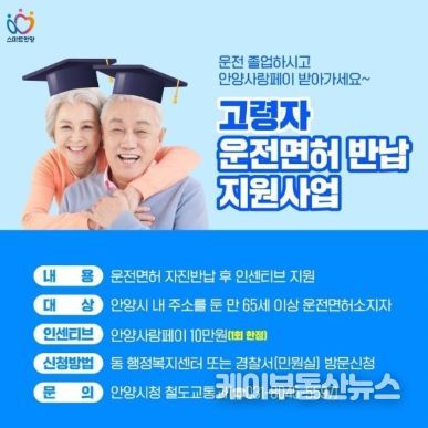 케이부동산뉴스 | 안양시가 고령자의 교통사고 발생률을 낮추고 안전한 교통환경을 조성하고자 고령 운전자를 대상으로 운전면허 자진반납 지원사업을 추진 중이라고 25일 밝혔다.