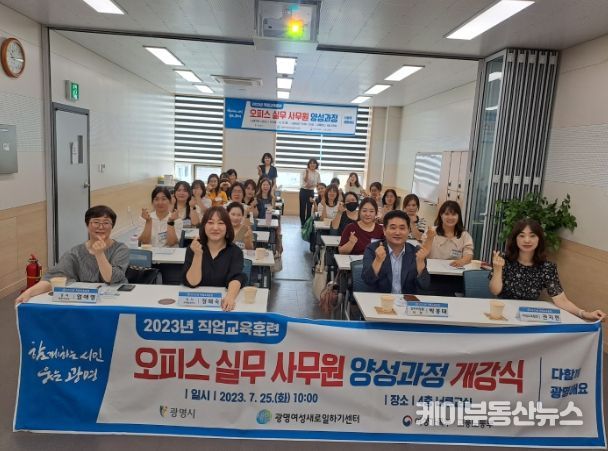 케이부동산뉴스 | 광명시 광명여성새로일하기센터는 25일 여성의 재취업을 통한 사회 진출과 경제적 자립을 위한 직업교육훈련 [오피스 실무 사무원 양성과정] 개강식을 훈련생 및 관계자 30여 명이 참석한 가운데 개최했다.