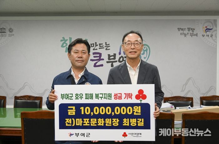 케이부동산뉴스 | 옥산실업 주식회사가 집중호우로 큰 피해를 입은 부여군의 빠른 복구와 이재민 지원을 위해 피해복구 성금 1천만원을 기탁했다.