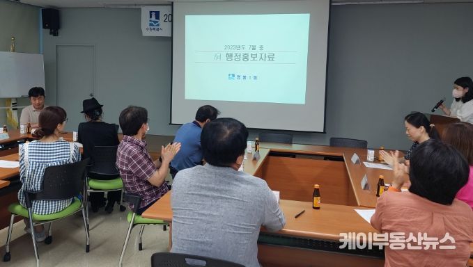이 날은 시정 홍보사항을 안내하고 지난 달 추진한 건강한 여름나기 다솜나눔, 다솜심신돌보미 및 다솜나눔건강과일지원 등 관내 저소득가구를 위한 반찬과 간식지원과 안부확인 사업에 대해 의견을 나눴다.