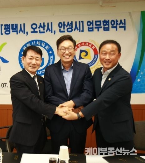 케이부동산뉴스 | 지난 25일 평택시체육회 대회의실에서 경기 남부권 3개 도시인 안성, 오산, 평택시의 체육회장이 한자리에 모여 경기남부지역 체육발전과 활성화를 위한 업무협약식을 가졌다.
