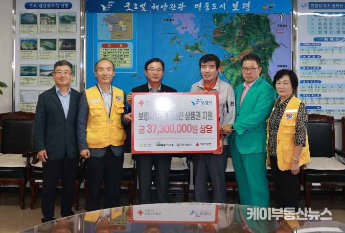 케이부동산뉴스 | 보령시는 26일 시장실에서 김동일 시장과 충남적십자사 박상규 사무처장, 봉사회 이흥원 보령지구협의회장, 전국이통장연합회 박종환 보령시지회장 등이 참석한 가운데 산불피해 지원 성금 전달식을 가졌다.