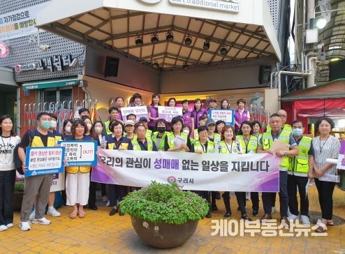 케이부동산뉴스 | 구리시는 지난 25일 구리전통시장 일원 성매매 우려 업소 186곳을 대상으로 구리경찰서, 구리가정성통합상담지원센터, (사)경기도여성단체협의회 구리시지회, 한국B.B.S구리시지회, 구리시 자율방범연합회, 구리시 기동순찰대와 함께 ‘민·관·경 성매매 방지 합동점검 및 캠페인’을 실시했다.