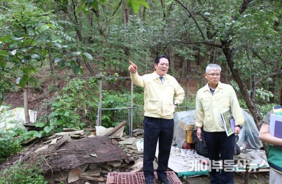최 시장은 먼저 이날 오전 9시40분경 관계 공무원과 함께 산사태 취약지역 점검에 나섰다.
