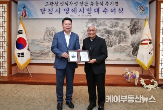 케이부동산뉴스 | 당진시는 교황청 성직자성 장관이자 대한민국 4번째 추기경인 유흥식 추기경을 당진시 명예시민으로 선정하고 26일 시청 해나루홀에서 명예시민패를 수여했다.