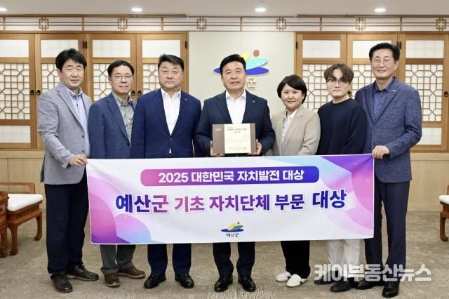 케이부동산뉴스 김교민 기자 | 예산군은 지난 23일 한국자치발전연구원이 주최한 ‘2025년 대한민국 자치발전 대상’ 시상식에서 기초자치단체 부문 대상 수상을 수상했다고 밝혔다.