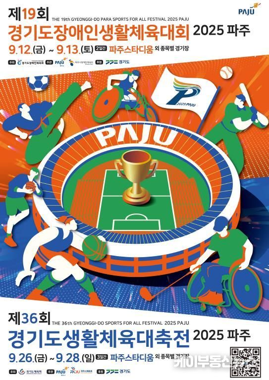 케이부동산뉴스 김교민 기자 | ‘시민중심 더 큰 파주 하나되는 경기도민!’을 슬로건으로 한 제36회 경기도생활체육대축전이 오는 26일부터 28일까지 파주시 일원에서 개최된다.