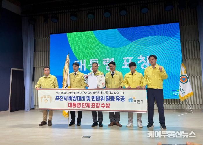 케이부동산뉴스 김교민 기자 | 포천시는 29일 열린 ‘경기도 제50주년 민방위대 창설기념식’에서 경기북부 최초로 대통령 단체표창(민방위 업무 유공 분야)을 수상했다.