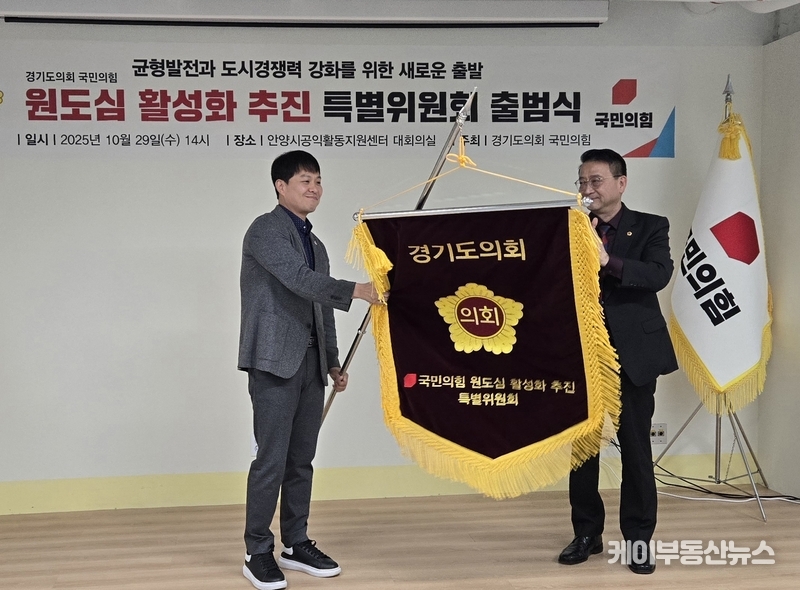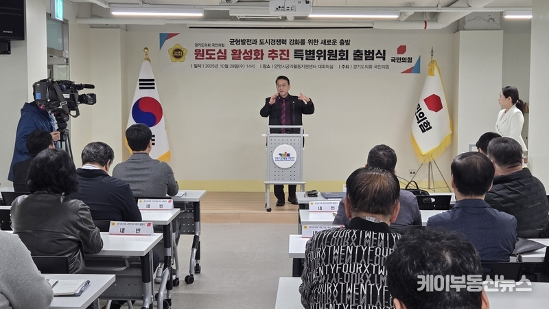 케이부동산뉴스 김교민 기자 | 경기도의회 국민의힘(대표의원 백현종, 구리1)이 29일 오후 안양시 공익활동지원센터 대회의실에서 ‘원도심 활성화 추진 특별위원회’ 출범식을 열고, 도내 노후 원도심의 균형 발전과 도시 경쟁력 강화를 위한 본격적인 활동에 들어갔다.