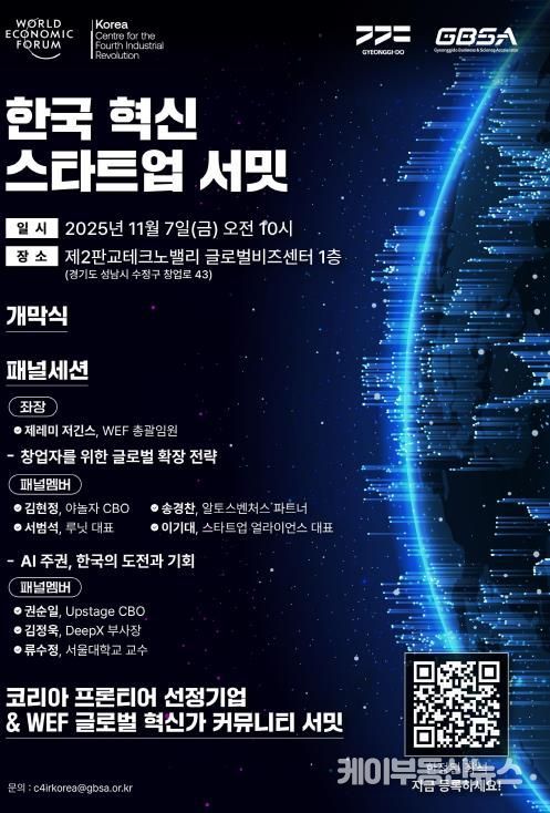 경기도는 오는 7일 세계경제포럼과 공동으로 ‘한국 혁신 스타트업 서밋(Korea Innovators Community Summit)’을 개최한다고 4일 밝혔다. 제2판교테크노밸리 글로벌비즈센터에서 열리는 이번 행사는 세계경제포럼과 경기도가 공동으로 선정한 한국 대표 혁신 스타트업들이 한자리에 모이는 최초의 공식 행사다. 세계경제포럼 혁신가 커뮤니티에 소속된 한국 기업과 함께 국내 유니콘 기업들이 참여한다.