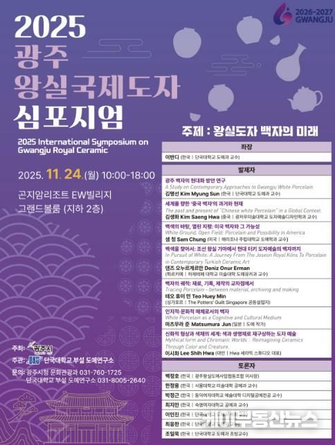 올해로 두 번째를 맞이하는 국제도자심포지엄에는 미국, 싱가포르, 튀르키예, 중국, 일본, 대만 등 세계 각국의 도자 분야 전문가와 국내 관계자, 시민 등이 함께 참여한다. 이들은 ‘광주왕실 도자’의 역사적 가치와 브랜드 경쟁력을 세계적 관점에서 논의하며 광주 도자의 글로벌 위상 제고 방안을 모색할 계획이다.