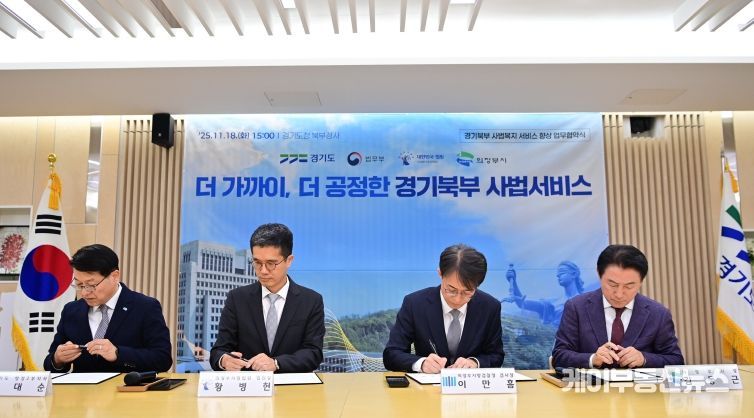 김대순 경기도 행정2부지사와 황병헌 의정부지방법원 법원장, 이만흠 의정부지방검찰청 검사장, 김동근 의정부시장은 18일 경기도 북부청사에서 이런 내용을 담은 ‘경기북부 사법복지 서비스 향상 업무협약’에 서명했다.