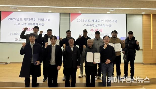 케이부동산뉴스 김교민 기자 | 경기북부보훈지청 제대군인지원센터는 11월 21일에 경복대학교 평생교육대학(경기 남양주)에서 9월에 시작된 ‘드론 운영 실무특화’ 위탁교육과정을 성공적으로 마무리하고, 총 10명의 교육생 전원이 교육을 수료했다고 밝혔다.