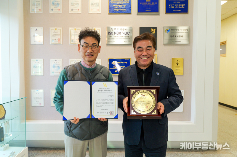 케이부동산뉴스 김교민 기자 | 양주도시공사(사장 이흥규)가 전국 최초로 지방공기업 경영평가 7년 연속 ‘가(최우수) 등급’을 달성하고, ESG 기반의 공공행정 혁신과 지역상생 성과를 인정받아 ‘공공행정 우수 ESG 특별상’을 수상했다.