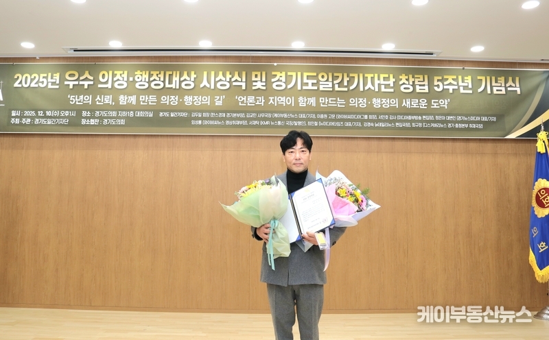한편, ‘2025 우수 의정·행정대상 시상식’은 경기도일간기자단 주관으로 지난 12월 10일 경기도의회 대회의실에서 개최됐으며, 올해는 외부 전문가 심사위원단 제도를 처음 도입해 수상자 선정 과정의 공정성과 전문성을 한층 강화했다는 평가를 받고 있다.