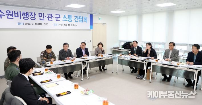 케이부동산뉴스 김교민 기자 | 수원특례시의회는 19일 의회 세미나실에서 공항 소음피해지역 주민들과 군, 시 관계자가 함께하는 ‘민·관·군 소통 간담회’를 개최하고 소음피해 해소를 위한 실질적인 대응 방안 마련에 나섰다.