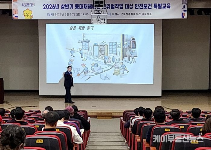 케이부동산뉴스 김교민 기자 | 화성특례시가 20일 고위험작업 담당자와 용역·위탁 사업장 근로자를 대상으로 ‘2026년 상반기 중대산업재해 예방 안전보건 특별교육’을 실시했다.