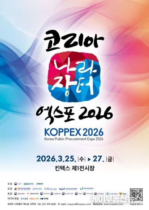케이부동산뉴스 김교민 기자 | 조달청은 국내 대표 공공조달 종합박람회인 ‘코리아 나라장터 엑스포 2026’가 3월 25일부터 27일까지 경기도 고양시 킨텍스에서 열린다고 밝혔다.
