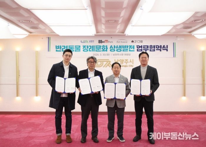 케이부동산뉴스 김교민 기자 | 남양주시는 30일 시청 여유당에서 관내 동물장묘업체와 ‘반려동물 장례문화 상생발전 업무협약’을 체결했다고 밝혔다.