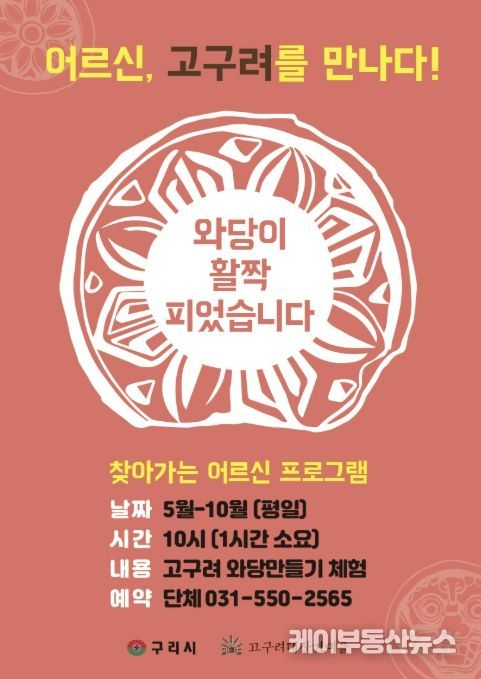 구리시 관계자는 “이번 프로그램을 통해 어르신들이 고구려 문화를 직접 체험하며 활력 있는 시간을 보내시길 바란다”라며 “세대 간 문화 향유 격차를 해소하고 우리 역사에 대한 자긍심을 높이는 계기가 되길 기대한다”라고 밝혔다.