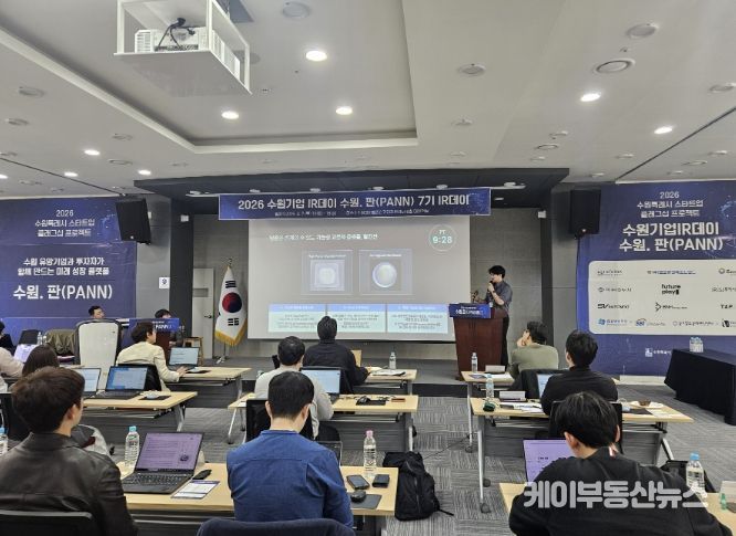 케이부동산뉴스 김교민 기자 | 수원특례시가 2일 수원벤처밸리2 기업지원센터 대회의실에서 2026 수원기업 아이알(IR)데이 수원.판(PANN) 7기를 개최했다.