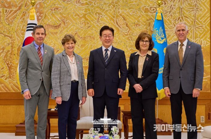 케이부동산뉴스 김교민 기자 | 이재명 대통령은 4월 2일 오후 청와대에서 진 섀힌(Jeanne Shaheen) 상원 외교위원회 간사 등 공화·민주 양당 의원으로 구성된 미국 상원의원 대표단을 접견했다. 이 대통령과 미 대표단은 한미동맹 및 한반도 문제를 비롯해 중동 전쟁의 안보적·경제적 파장과 대응 방안에 대해 심도 있는 의견을 교환하고, 향후 경제적 여파 대응 과정에서 한미가 긴밀히 소통해 나가는 것이 중요하다는 점에 뜻을 같이 했다.