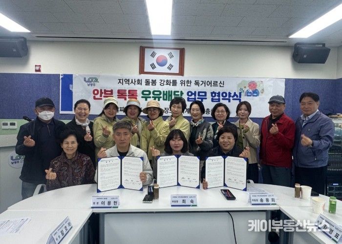 케이부동산뉴스 김교민 기자 | 남양주시는 지난 2일 퇴계원읍이 사회적 고립 위험에 처한 독거노인 및 위기 1인 가구를 위한 ‘안부 톡톡 우유배달사업’ 협약식을 퇴계원읍 지역사회보장협의체 정기회의에서 개최했다고 3일 밝혔다.