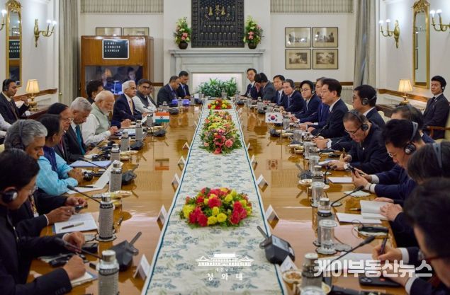 케이부동산뉴스 김교민 기자 | 청와대는 이재명 대통령의 인도 국빈 방문 성과와 관련 "우리 글로벌 사우스 외교의 본격적인 가동을 알리는 계기이자 14억 인구를 바탕으로 고속 성장 중인 인도와 새로운 협력 모멘텀을 창출하고 미래지향적이고 전략적인 분야로 양국 간 협력의 지평을 확대하는 계기가 됐다"고 평가했다.