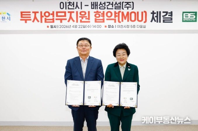 케이부동산뉴스 김교민 기자 | 이천시가 22일 배성건설㈜와 203억 원 규모의 투자업무지원협약을 체결하고, 기업의 신규 공장 신설을 본격 지원한다.