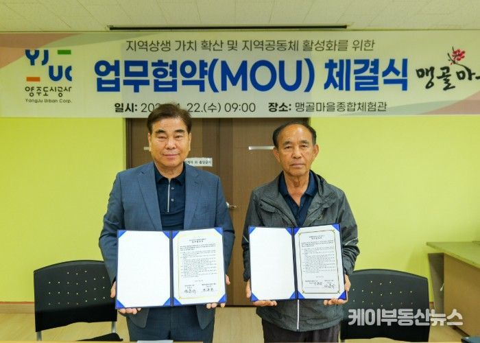 케이부동산뉴스 김교민 기자 | 양주도시공사는 지난 22일 양주시 남면 맹골마을에서 농촌일손돕기 자원봉사활동을 실시하고, 맹골마을영농조합법인과 지역상생을 위한 업무협약을 체결했다고 밝혔다.