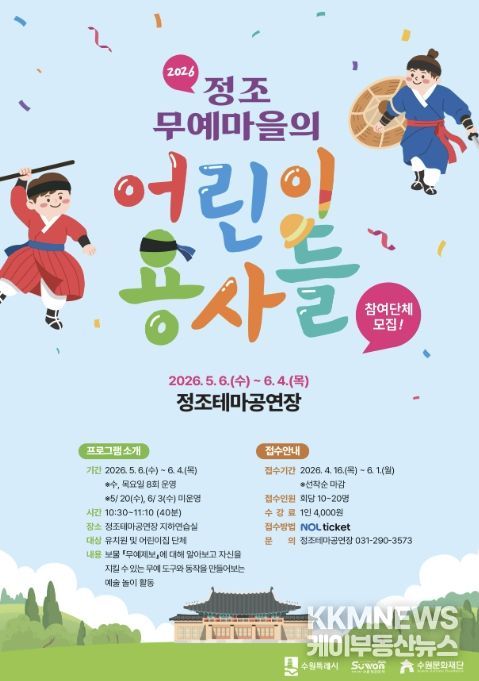 KKMNEWS 김교민 기자 | 수원문화재단 정조테마공연장의 대표 예술교육 프로그램 '정조무예마을의 어린이 용사들'의 상반기 교육이 접수 마감되며 큰 호응을 얻고 있다.