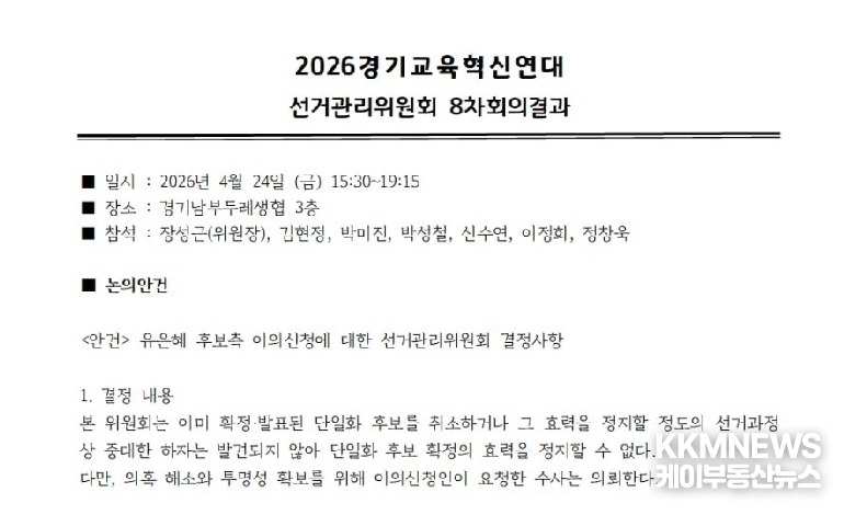 절차적 정당성 논란이 지속될 경우 단일화 명분은 물론 본선 경쟁 구도에도 영향을 미칠 수 있다는 점에서, 이번 사안은 경기도교육감 선거의 핵심 변수로 부상하고 있다.