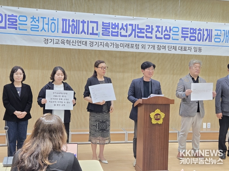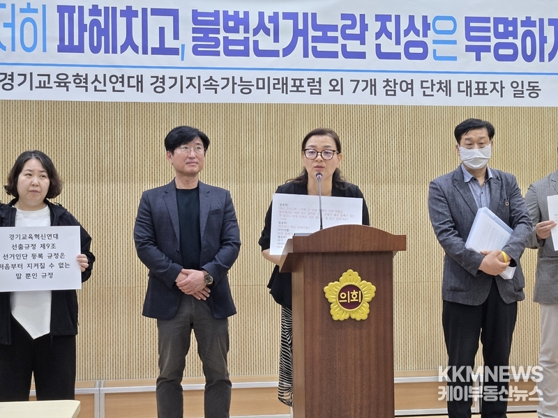 경기교육혁신연대 소속 일부 회원단체는 27일 오후 2시 30분 경기도의회 3층 브리핑룸에서 2차 기자회견을 열고, 대리등록·가입비 대납 의혹과 관련해 “선거 구조 자체에 문제가 있었다”며 수사의뢰와 후보 확정 유보를 재차 요구했다.