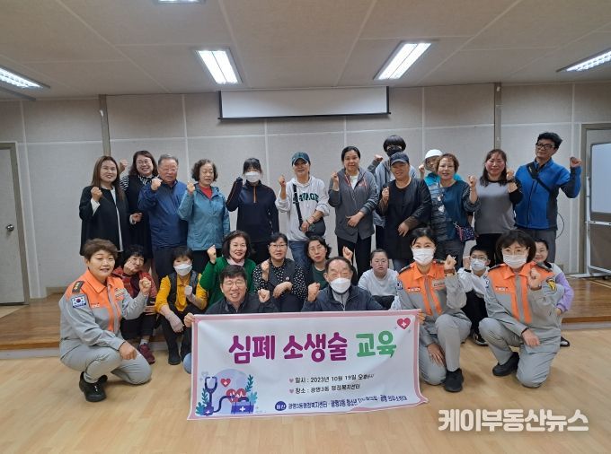 케이부동산뉴스 김교민 기자 | 광명시 광명3동 청소년지도협의회는 지난 19일 광명시 여성의용소방대를 초청해 심폐소생술 교육을 받았다. 해당 교육에는 광명3동 통장과 동 주민들이 함께 참여했다.