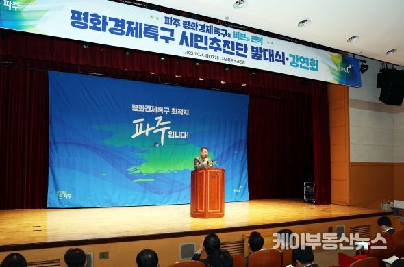 케이부동산뉴스 김교민 기자 | 시민과 함께하는 평화경제특구 파주시 유치를 위해 구성된 ‘평화경제특구 유치 시민추진단’이 24일 발대식을 열고 더 큰 파주를 향한 힘찬 걸음을 내디뎠다.