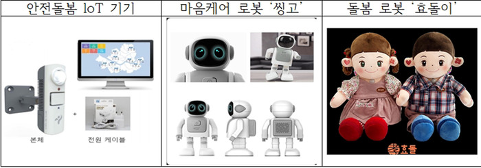 AI 돌봄 로봇(효돌이)은 약 복용과 식사 시간 등의 설정 기능이 있는 기기로, 대상자의 말벗이 돼 준다. 지역 내 고독사 저위험군 113명에게 돌봄 로봇을 지급한다.